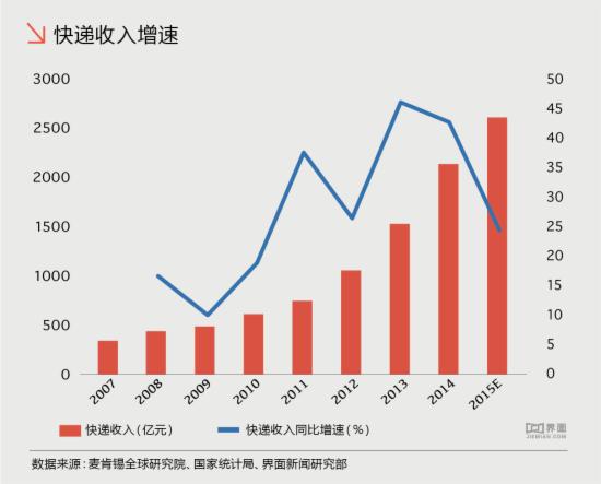 申通快遞在重組預案中承諾2016年度、2017年度、2018年度歸屬于母公司所有者凈利潤將分別不低于為11.7億、14億元以及16億元。按照這樣測算2018年的利潤增速僅為14%。當然要完成這樣的業績并不難,但是不可否認,快遞整體行業遇到的瓶頸也確實已經來到,要突破它也許也只能依靠合并來抱團取暖。