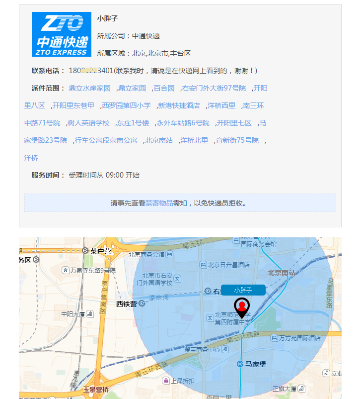 第三步:點擊“找快遞員”,會打開快遞網(wǎng)點的電話聯(lián)系頁面(如下圖所示),撥打電話頁面上顯示的電話,告知“我是在快遞網(wǎng)網(wǎng)站站上看到您的電話的,我要寄一個快件,請上門取件”及您的具體地址,快遞員即會上門取件。