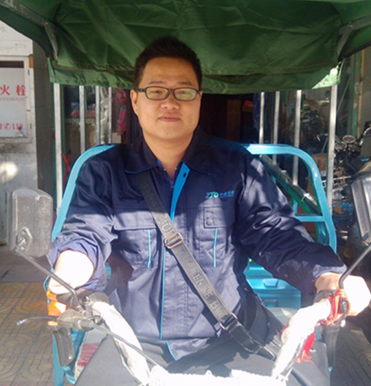在操作場地打包區(qū)域,黃月斌僅用3分鐘將40-50個(gè)大小不一的快件整齊地放在袋子里。而快件全套操作流程,黃月斌只用了1個(gè)月就全部掌握。由于他積極上進(jìn),還考取了快遞員技能資格證書。然而有誰知道,分揀、建包、派件等這些工作,普通人或許可以信手拈來,但是黃月斌卻不行。4歲時(shí)因貪玩右臂被鞭炮炸傷截肢,只能靠左手勞作生活的黃月斌需要付出比健全人更多的努力。就拿建包來說,快件必須要整齊碼放在建包袋里,黃月斌單手裝件,必要時(shí)他就手腳并用,再不濟(jì)就用嘴咬住袋口。另外黃月斌送件的三輪車也是經(jīng)過他自己改裝,加油門的拉桿被他套上了一截水管,使他右臂截肢以上的部位可以套到水管中,從而完成加油門的動(dòng)作?!半m然失去了一直手臂,但是我還是對生活充滿信心?!?/span>